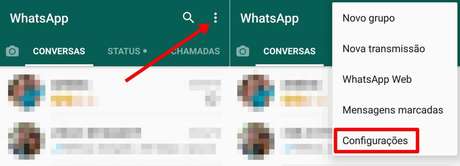 Na interface principal do WhatsApp, clique nas reticências, no canto superior direito da tela e, depois, em "Configurações".